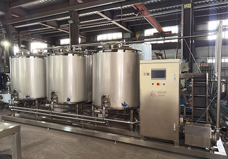 全自动CIP清洗系统由酸罐,碱罐,热水罐,纯水罐、浓酸、浓碱罐,换热器、各种管道和气动阀门、压力变送器、电导率仪、铂热电阻及控制系统等组成。